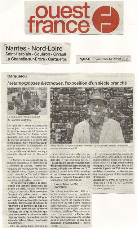 Invité de l’IUT de Nantes pour l’exposition « Métamorphoses Électriques » en partenariat avec le PATSTEC, Patrimoine Scientifique Technique Contemporain, Tassou a exposé du 28 janvier à fin juin 2014. Il a dévoilé la planète « E.Recollection » fabriquée en partenariat avec Emmaüs Nantes.