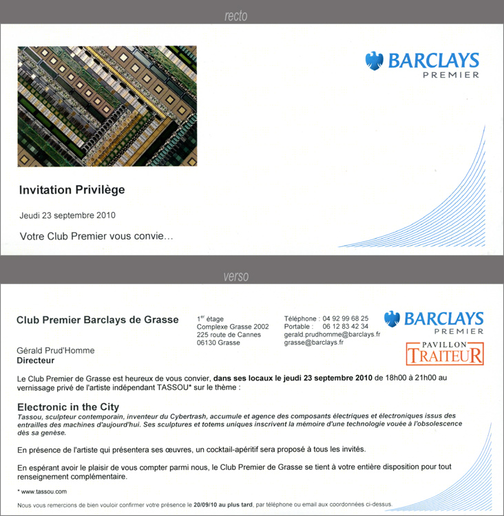 Pour célébrer le 50ème anniversaire de sa présence en France, Texas Instruments a commandé a Tassou une sculpture commémorative intitulée « TI 50 » dévoilée le 25 juin 2011 au siège social de TI France à Villeneuve Loubet.